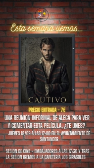 💬 Tal y como indica en el cartel, quedamos este jueves en el Ayuntamiento de Santander a las 17:00 para poder ir en grupo a ver la película El Cautivo en Cine Embajadores. Luego, iremos a la cafetería Los Girasoles