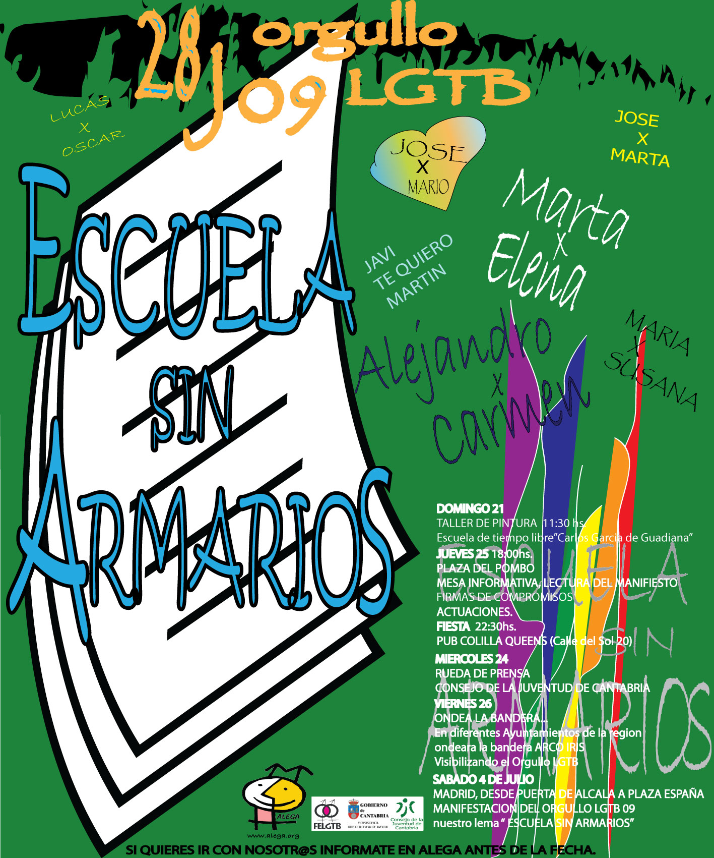 Jueves 25: A partir de las 18:00 hrs. mesa informativa y posterior lectura de Manifiesto y entrega del Premio Aleguita 09 (20:30), contaremos con la actuación del grupo GARMA. A partir de las 22:30. Fiesta del Orgullo en el Pub Colilla Queens (calle del Sol,20)